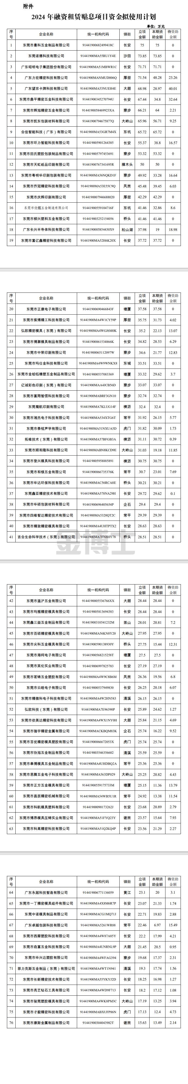關(guān)于2024年東莞市融資租賃貼息項目資金擬使用計劃的公示